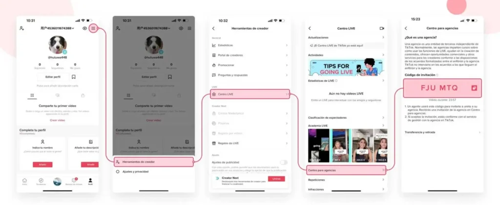 In the form we will ask for your creator code. This does not give us access to your account nor does it have implications with us: we simply use it to verify if your profile is suitable through Live Backstage, the official software of agencies certified by TikTok LIVE.