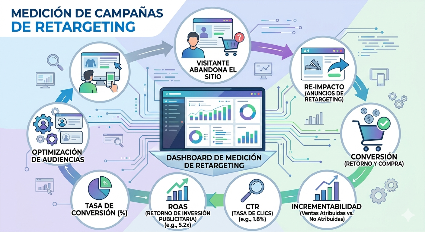 Medir el éxito de una campaña de retargeting es clave para optimizar estrategias y mejorar el retorno de inversión. Uno de los principales KPIs es la tasa de conversión, que mide cuántos usuarios completan una acción deseada después de ver un anuncio de retargeting.