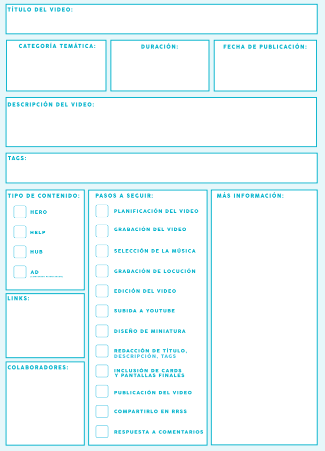 El organizador que necesitas para desarrollar una estrategia de éxito para tu canal de YouTube