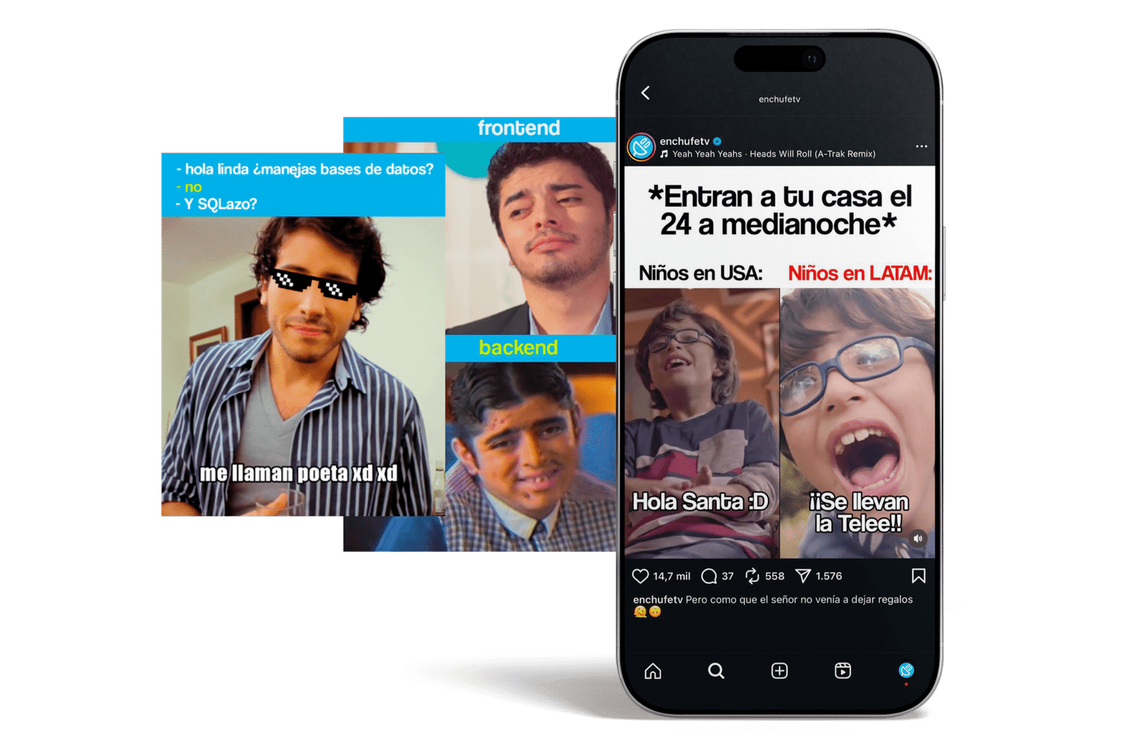 Campañas en las redes de enchufe.tv con métricas claras: awareness, engagement y conversión. Hacemos reír y generamos recordación.